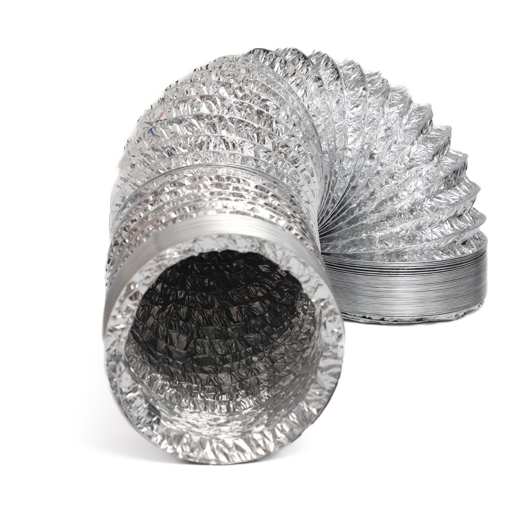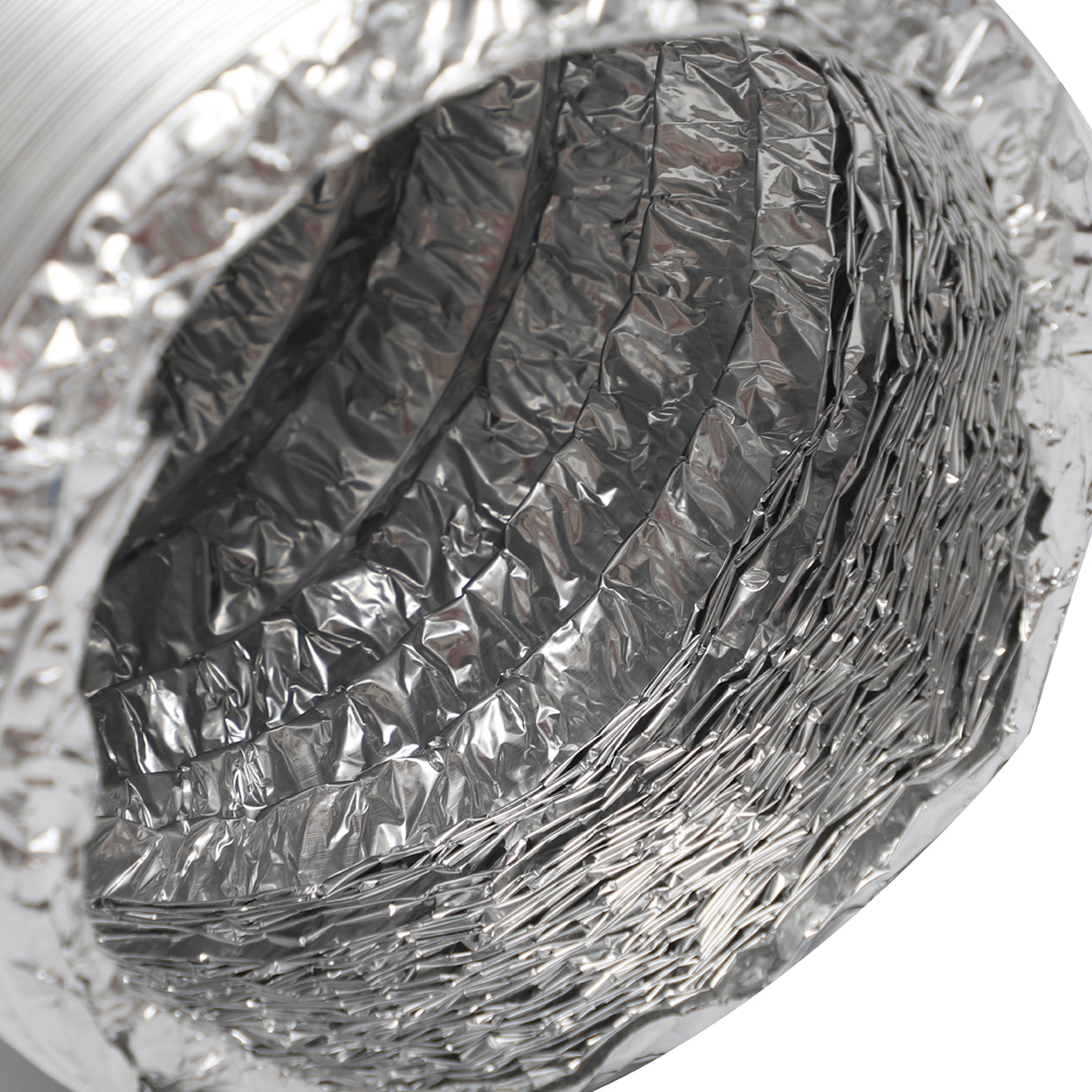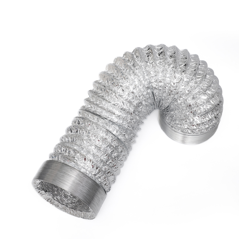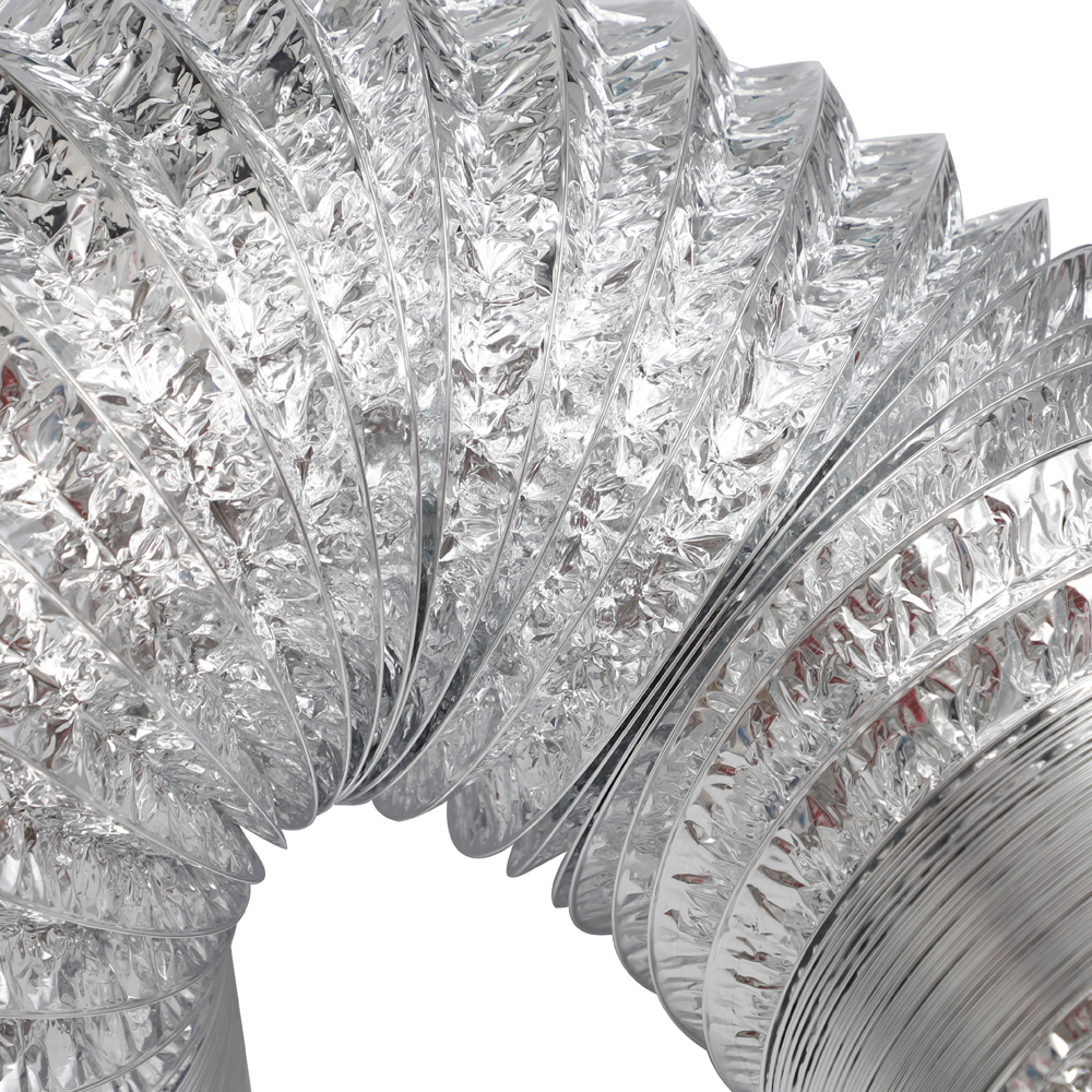 Our aluminum flexible duct is crafted from a robust combination of aluminum foil, PET layer, and steel wire reinforcement, offering exceptional resistance to corrosion and metal fatigue.
